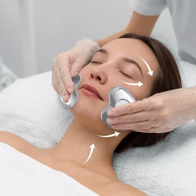 Con ghiaccio e calore, morbido, strettamente in forma la pelle del viso |