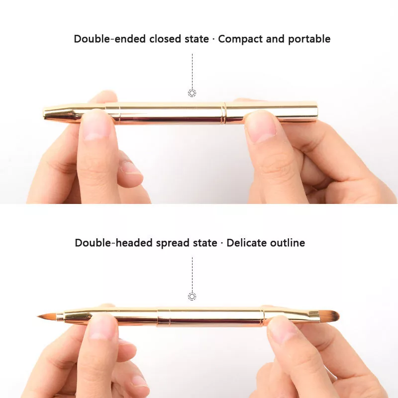 Questo pennello per trucco singolo per labbra presenta un design a doppia estremità con morbide setole sintetiche. Ha una punta precisa per delineare le linee delle labbra e un pennello piatto per riempire il colore, con un elegante manico in metallo per una facile presa e un utilizzo in movimento.